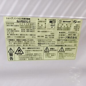 今回は東京都千代田区丸の内にお住まいの20代女性(会社員・単身・賃貸マンション)のお客様より、SHARP ノンフロン冷凍冷蔵庫 SJ-PD27C-T(2017年製)を出張買取にてご依頼いただきました。