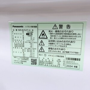 今回は東京都足立区にお住まいの30代男性より、Panasonic ノンフロン冷凍冷蔵庫 NR-B252T-H(2024年製)を出張買取にてご依頼いただきました。容量248Lの2ドアタイプで、単身世帯や夫婦世帯でも使いやすいサイズの冷蔵庫です。比較的新しいモデルであることから中古市場でも需要が高く、状態を確認しながら丁寧に査定を行いました。