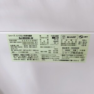 拝見したシャープ 冷凍冷蔵庫 SJ-BD23K-Wは2023年製と比較的新しいモデルで、外観には使用に伴うわずかな擦れが見られる程度で大きな傷やへこみは確認されませんでした。庫内の棚板やドアポケット、野菜ケースなどのパーツも揃っており、割れや欠品はありません。内部も清潔に使用されており、食品汚れや臭いの付着もほとんど見受けられませんでした。冷却動作や温度調整などの基本機能も問題なく確認でき、中古品として再販可能な良好なコンディションと判断しました。