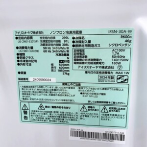 アイリスオーヤマの冷蔵庫は比較的新しいブランドながら価格と性能のバランスが良く、特に300L前後の中型モデルは中古市場でも需要が伸びています。今回のIRSN-30A-Wは2024年製と非常に新しく、庫内の状態も良好でパーツの欠品もなかったことが評価ポイントとなりました。また中古市場での再販需要も見込めるため、流通価格を踏まえて査定した結果、今回は7,000円での買取価格をご提示しました。