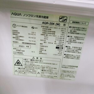 東京都渋谷区へ出張買取 AQUA 冷凍冷蔵庫 AQR-20K(W)(2021年製)庫内きれいな状態のため適正価格で査定しました