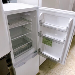 拝見したTCL 冷凍冷蔵庫 CRB126AWは2025年製と非常に新しいモデルで、外観には目立つ傷やへこみはなくきれいな状態でした。庫内のガラス棚やドアポケット、冷凍室ケース、製氷皿などの付属品も揃っており、破損や欠品は確認されませんでした。内部も清掃された状態で、食品汚れや臭いの付着も見られません。動作確認として冷却状況や温度調整の確認を行いましたが問題なく、中古品として再販売可能な良好な状態と判断しました。