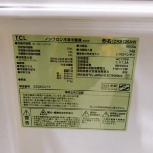 TCL製の小型冷蔵庫は一人暮らし需要が高く、特に120L前後のコンパクト冷蔵庫は中古市場でも一定の流通があります。今回のCRB126AWは2025年製と非常に新しく、庫内の状態も良好で付属品の欠品もなかったため再販価値が高いと判断しました。また、新生活需要の高いサイズ帯であることも考慮し、相場を踏まえて査定した結果、今回は5,000円での買取価格をご提示しました。