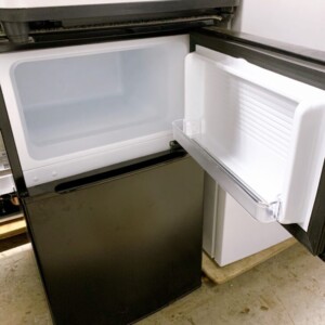 今回拝見したcomfee 冷凍冷蔵庫 RCT90BL(E)は2024年製の比較的新しいモデルですが、外観には使用による細かな汚れや指紋跡が見受けられる状態でした。大きなへこみや破損はありませんが、日常使用による使用感は確認できました。庫内の棚板やドアポケット、野菜ケースなどのパーツは揃っており、破損はありません。冷却動作の確認では問題なく冷え、温度調整も正常に作動していたため、中古家電として再販売可能な状態と判断しました。