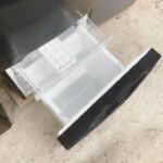外観には使用に伴う細かな擦れや軽微な小傷が見受けられましたが、目立つへこみや大きな破損はありませんでした。庫内は比較的きれいな状態で、ガラス棚・ドアポケット・野菜ケースなどの付属パーツも揃っていました。冷凍室の引き出しや製氷トレーも残っており、動作確認でも冷却機能に問題はありませんでした。