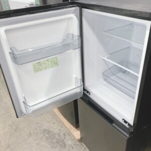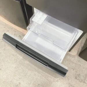 外観には日常使用による細かな擦れや軽微な汚れが見られましたが、大きな凹みや破損はありませんでした。庫内の棚やケースなどの付属品も揃っており、冷却動作の確認も問題なく行えました。冷凍室の引き出しや製氷トレーも残っており、再販に支障のない状態であると判断しました。