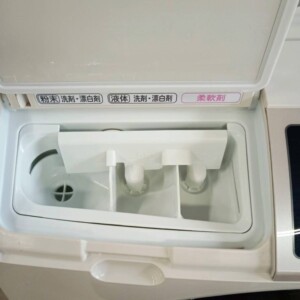 外観には使用に伴う細かな擦り傷が見られる状態でしたが、大きなへこみや破損はありませんでした。ドラム内部やパッキン部分も比較的きれいで、動作確認では洗い・脱水・乾燥の基本動作に問題はありませんでした。付属の給水ホースなども揃っており、再販に支障のないコンディションと判断しました。
