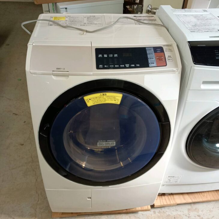 お引き取りした商品は日立のドラム式洗濯乾燥機 BD-SV110ARで、洗濯容量11kg・乾燥容量6kgの大容量モデルです。日立の人気シリーズ「ビッグドラム」のスリムタイプで、家庭用ドラム式洗濯機の中でも需要の高い機種となります。