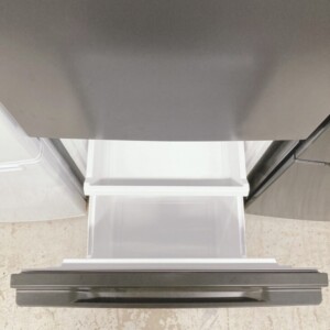 外観は目立つへこみや大きな傷はなく、使用感の少ないきれいな状態でした。庫内の棚板やドアポケット、野菜ケースなどのパーツも揃っており、破損や欠品は確認されませんでした。