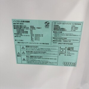 今回査定した商品はHaier ノンフロン冷凍冷蔵庫 BR-85A(2025年製)です。容量85Lのコンパクトタイプで、一人暮らしやサブ冷蔵庫として人気のあるモデルとなっています。