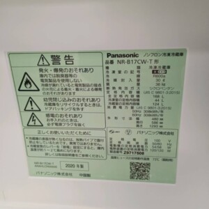 今回は日野市にお住まいの40代女性(主婦・親子世帯・持ち家マンション)より、Panasonic ノンフロン冷凍冷蔵庫 NR-B17CW-T(2020年製)の出張買取をご依頼いただきました。