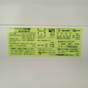 今回は多摩市にお住まいの20代男性(会社員・単身世帯・賃貸アパート)より、SHARP ノンフロン冷凍冷蔵庫 SJ-D15H-H(2022年製)を出張買取にてご依頼いただきました。