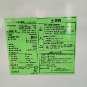 今回は目黒区自由が丘にお住まいの30代女性・会社員・単身・賃貸(マンション)のお客様より、REFAGE ノンフロン冷凍冷蔵庫 YRZ-F15LK(2024年製)を出張買取にてご依頼いただきました。