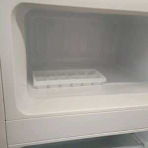 お預かりした冷蔵庫は、外観に目立つ傷や凹みが少なく比較的きれいな状態でした。庫内も使用感はあるものの、棚板やケースの欠品はなく、全体的に清潔に保たれている印象でした。冷凍室には製氷トレーも付属しており、動作確認でも冷却機能に問題は見られませんでした。2020年製という点を踏まえても、中古市場では需要のあるコンパクトモデルです。