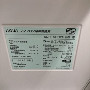 今回は稲城市にお住まいの40代男性・会社員・親子世帯・持ち家(一戸建て)のお客様より、AQUA ノンフロン冷凍冷蔵庫 AQR-VD32F(2018年製)を出張買取にてご依頼いただきました。