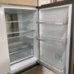 お預かりした冷蔵庫は、外観に日常使用による細かな傷や擦れが見受けられる状態でしたが、大きな凹みや破損はなく全体的には良好な印象でした。庫内も清掃が行き届いており、棚板やドアポケット、野菜室・冷凍室の引き出しなどの付属品も揃っており、機能面に問題のない状態でした。冷却動作も確認済みで、再利用可能なコンディションでした。