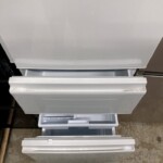 今回お引き取りした冷蔵庫は、外観に軽微な擦れや使用に伴う細かな傷が見られる状態でしたが、大きな凹みや目立つダメージはありませんでした。庫内は全体的に使用感はあるものの、棚板やドアポケット、野菜室・冷凍室の引き出しなどは揃っており、実用面に問題のないコンディションでした。冷却機能も正常に動作しており、再販可能な状態と判断しました。