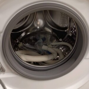 お引き取りした洗濯機は、外観に若干の汚れの付着が見られるものの、全体的にはきれいな状態でした。洗剤投入口に軽微な汚れはありましたが、ドラム内部は非常に清潔で使用感は少なく、ホース類も揃っておりました。動作確認でも洗浄・脱水・乾燥ともに問題なく、実用面で非常に良好なコンディションと判断しました。