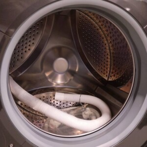 お引き取りした商品は、外観に目立つ傷やへこみがほとんど見られない良好な状態でした。洗剤投入口やパネル周辺も軽微な使用感はあるものの清潔に保たれており、ドラム内部もサビやカビの発生は確認されませんでした。給排水ホースなどの付属品も揃っており、動作確認においても洗浄・脱水・乾燥すべて問題なく稼働する状態でした。