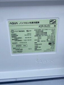 AQUA(アクア)355L 4ドア冷蔵庫 AQR-36J(S) 2020年製