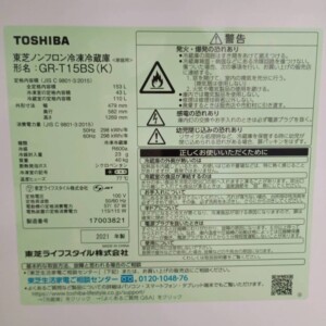 今回は千代田区有楽町にお住まいの30代女性・会社員・単身世帯・賃貸(マンション)のお客様より、TOSHIBA 冷蔵庫 GR-T15BS(K)(2021年製)を出張買取にてご依頼いただきました。