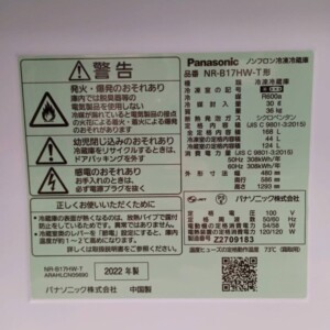 東京都豊島区駒込へ出張買取 Panasonic NR-B17HW-T 冷蔵庫 2022年製 美品のため高価査定しました