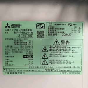 東京都世田谷区用賀へ出張買取 三菱電機 MR-P15G-H 冷凍冷蔵庫 使用感少なめのため適正価格で査定しました