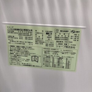ご依頼いただいたSJ-W357J-Nは、外装に目立つ傷や大きなへこみは見受けられず、全体的にきれいな状態でした。庫内の棚板・ドアポケット・野菜室・冷凍室の引き出しもすべて揃っており、破損や欠品はありませんでした。使用に伴う軽微なスレはあるものの、清掃が行き届いており衛生的な状態が保たれている点が印象的でした。冷却機能も問題なく、再販に適したコンディションでした。