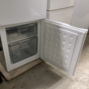 実際に拝見したところ、外装・庫内ともに非常にきれいな状態でした。目立つキズやへこみはなく、棚板やドアポケットも欠品なく揃っています。冷却機能も問題なく動作しており、使用期間が短いことが感じられる良好なコンディションでした。簡易清掃も行き届いており、再販しやすい状態です。