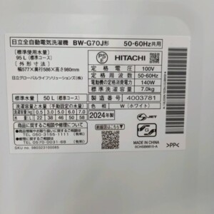 今回は台東区にお住まいの40代女性(主婦・親子世帯・持ち家マンション)より、HITACHI 全自動電気洗濯機 BW-G70J(2024年製)を出張買取にてご依頼いただきました。