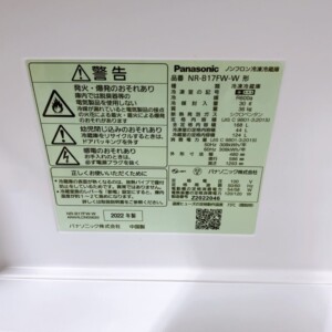 今回は荒川区にお住まいの50代男性(自営業・夫婦世帯・持ち家一戸建て)より、Panasonic ノンフロン冷凍冷蔵庫 NR-B17FW-W(2022年製)を出張買取にてご依頼いただきました。