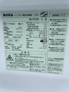 MUJI(無印良品)157L 2ドア冷蔵庫 MJ-R16A-2 2020年製