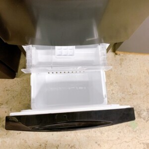お引き取りした冷蔵庫は、庫内は清掃が行き届いており、棚やドアポケットも揃っている比較的良好な状態でした。動作確認でも冷却機能に問題はなく、通常使用には支障のないコンディションです。一方で外装には擦り傷やくもりが見受けられる使用感のある状態であり、前面パネルには細かなキズが複数確認できました。大きな凹みや破損はありませんが、外観の状態は査定に影響するポイントとなりました。