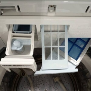 ご依頼いただいた洗濯機は、洗濯槽内部は比較的きれいな状態で、大きなカビや汚れは見受けられず清潔感のあるコンディションでした。動作確認でも洗い・すすぎ・脱水・乾燥ともに問題なく稼働しています。ただし、洗剤投入口やフィルター周辺には軽微な汚れや使用感が確認でき、外観にも日常使用による細かな傷が見受けられる状態でした。