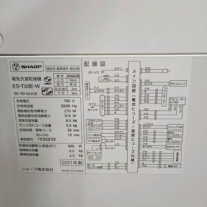 東京都世田谷区成城へシャープ ES-TX8E-W(2021年製)8.0kg洗濯乾燥機 使用感ありのため適正価格で出張買取しました