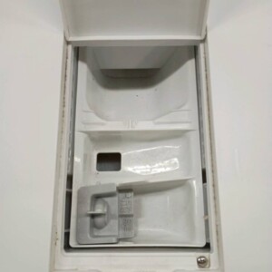 お引き取りした洗濯機は、比較的新しいモデルであり、外観には大きな傷はないものの、洗剤投入口周辺に細かな汚れや使用感が確認できる状態でした。ドラム内部は目立つ汚れも少なく、清潔感のあるコンディションを保っており、動作確認でも洗浄・乾燥ともに問題なく稼働しました。付属の給排水ホースも揃っており、再販しやすい状態でした。