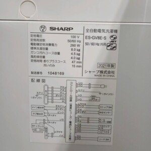 今回は青梅市にお住まいの50代女性(主婦・夫婦世帯・持ち家一戸建て)より、SHARP 全自動洗濯機 ES-GV8E-S(2021年製・8.0kg)を出張買取にてご依頼いただきました。