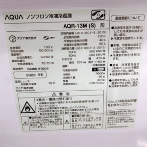 今回は稲城市にお住まいの20代女性(会社員・単身・賃貸アパート)より、AQUA ノンフロン冷凍冷蔵庫 AQR-13M(S)(2022年製・126L)を出張買取にてご依頼いただきました。