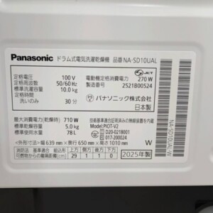 今回は世田谷区にお住まいの40代女性・主婦・夫婦世帯・持ち家(マンション・分譲マンション)のお客様より、Panasonic ドラム式電気洗濯乾燥機 NA-SD10UAL(2025年製)を出張買取にてご依頼いただきました。