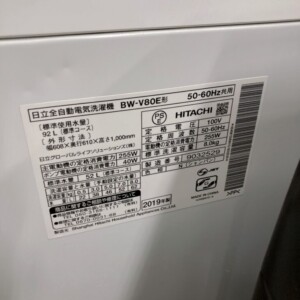 今回は江戸川区にお住まいの40代女性・主婦・親子世帯・賃貸(アパート)のお客様より、HITACHI 全自動電気洗濯機 BW-V80E(2019年製)を出張買取にてご依頼いただきました。