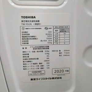 今回は大田区にお住まいの50代男性・自営業・夫婦世帯・持ち家(マンション)のお客様より、TOSHIBA ドラム式電気洗濯乾燥機 TW-95G9L(2020年製)を出張買取にてご依頼いただきました。