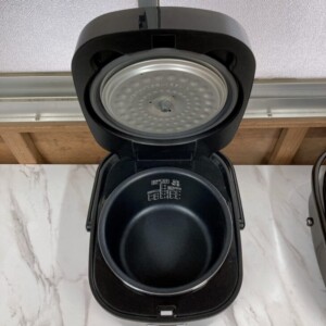 お預かりした炊飯器は、外装に細かな擦り傷やホコリの付着が見受けられ、使用感のある状態でした。内釜は比較的きれいではあるものの、日常使用による軽微な使用跡が確認できます。ただし、炊飯・保温機能ともに正常に動作しており、基本性能には問題のない状態でした。付属品は本体のみでのご依頼となりました。