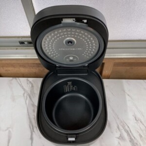 拝見した炊飯器は、全体的に軽微な使用感が見られる状態でした。外装には日常使用による細かなスレや汚れが確認できましたが、大きな傷や破損はありません。内釜も比較的きれいで、コーティングの剥がれは目立たず、炊飯・保温・各種ボタン操作などの基本動作は問題なく良好でした。比較的新しい2023年製である点も評価ポイントとなりました。