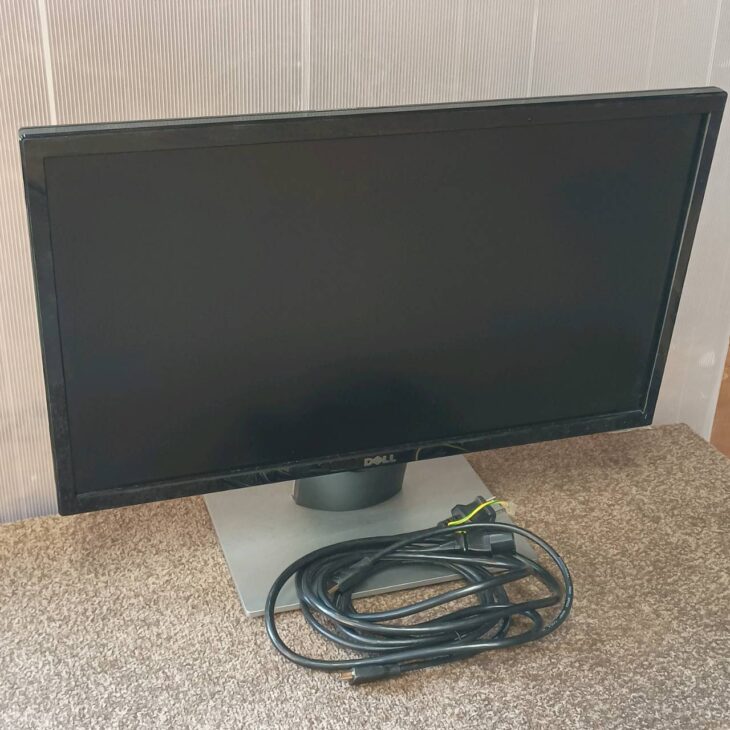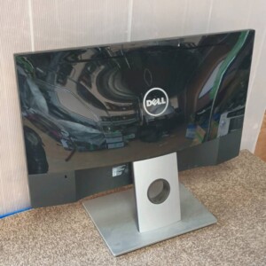 お引き取りしたDELLの液晶モニターは、電源・映像表示ともに問題なく動作する状態でした。液晶パネルには大きなキズはありませんが、画面に拭き跡や軽微なスレが見られ、外装にも細かな傷やホコリの付着が確認できました。付属品は電源ケーブルと接続ケーブルがあり、基本的な使用には問題のない状態でした。