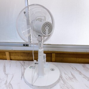お引き取りしたYAMAZENの扇風機は、動作確認済みで風量調整・首振り機能ともに問題なく使用可能な状態でした。全体的に使用期間が浅く、モーター音も静かで性能面は良好です。ただし、ガード部分や本体背面に細かなホコリの付着や軽微な汚れが見られました。リモコンも付属しており、基本機能は一通り揃っている状態でした。