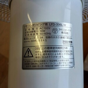今回は稲城市にお住まいの30代女性(主婦・夫婦世帯・持ち家マンション)より、アイリスオーヤマ リモコン式リビング扇風機 LFD-306L-W(2022年製)を出張買取にてご依頼いただきました。