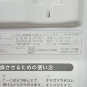 今回は東京都江東区にお住まいの50代女性より、アイリスオーヤマ 布団乾燥機 カラリエ FK-W1-WP(2020年製)を含む複数の家電製品をまとめて出張買取のご依頼をいただきました。