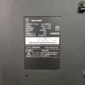 東京都墨田区でSHARP AQUOS 液晶テレビ LC-22K20 2015年製 使用感ありを出張買取しました