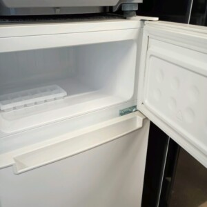 お引き取りした冷蔵庫は外装に目立つ傷やへこみがほとんど見られないきれいな状態でした。庫内も使用感が少なく、棚板・ドアポケット・製氷トレーなどの付属品も揃っており、清潔感のある印象です。冷却動作も問題なく、冷蔵・冷凍ともにしっかり機能していることを確認しました。中古市場でも需要の高いコンパクトモデルとして再販しやすい良好な状態と判断いたしました。