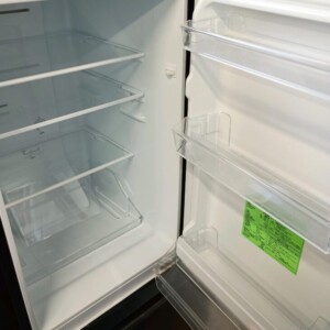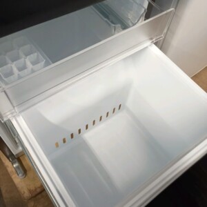 お引き取りした冷蔵庫は外装に若干の擦り傷が見受けられるものの、全体的にきれいな状態でした。庫内も使用感が少なく、棚板やドアポケット、野菜ケースなどのパーツも揃っており、衛生面も良好です。冷却性能も問題なく、冷蔵・冷凍ともにしっかり稼働していることを確認しました。比較的新しい年式で再販価値の高い状態と判断いたしました。